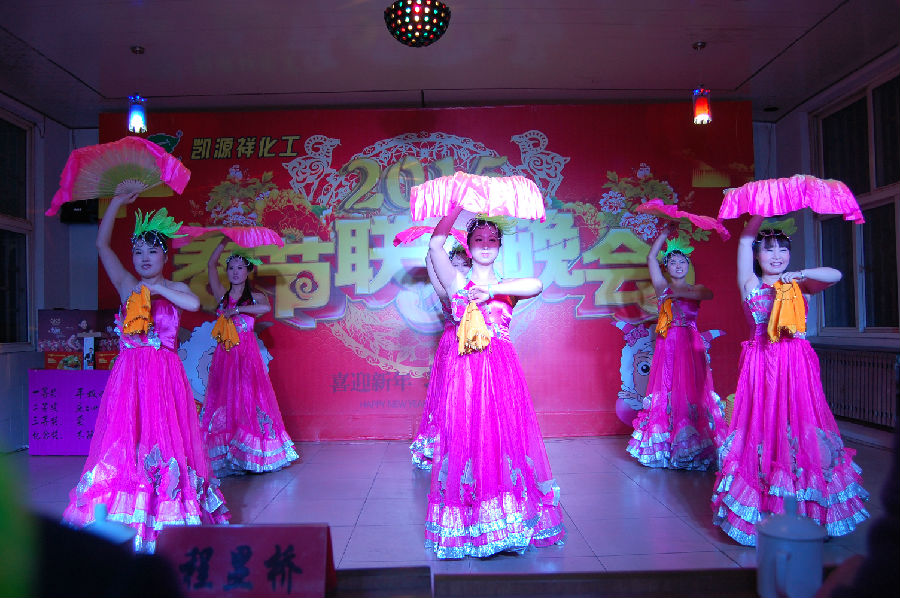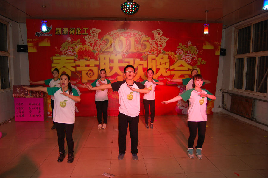 帥哥美女們給我們帶來(lái)的神曲《小蘋(píng)果》加之健身元素則帶給大家別有一番滋味的感覺(jué)。由工廠(chǎng)一群大姐們帶來(lái)的《大姑娘美》,讓我們看到在文藝舞臺上的她們大放光彩。那曼妙的舞姿、動(dòng)人的旋律,仿佛把我們帶入那個(gè)青春飛揚的年代。一曲由設備科、電工班組合給我們帶來(lái)的《咱們工人有力量》小合唱,不僅讓我們看到了一支團結向上的隊伍,而且讓我們感受到了團隊振奮人心的力量。詩(shī)朗誦《2015我希望》帶領(lǐng)我們回顧了凱源祥的過(guò)去,展望凱源祥的未來(lái)……