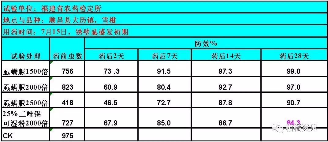 虱螨脲在柑橘上防治銹壁虱的試驗