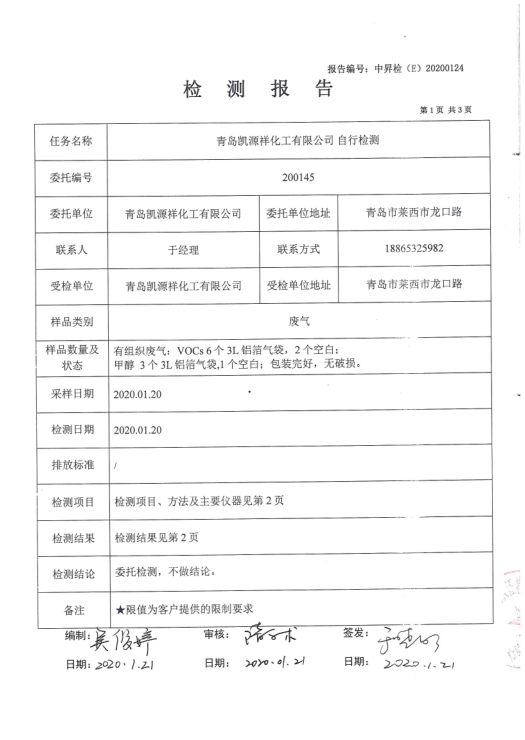 2020年1月份環(huán)境檢測信息公開(kāi)