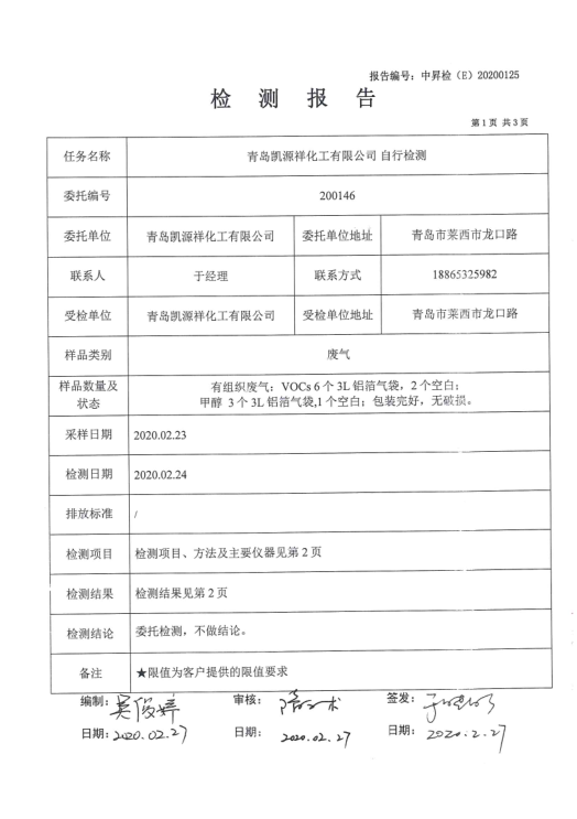 2020年2月份環(huán)境檢測信息公開(kāi)