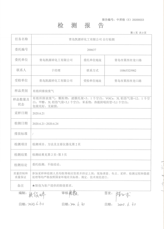 2020年6月份環(huán)境檢測信息公開(kāi)