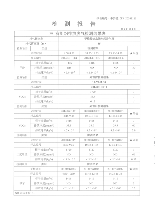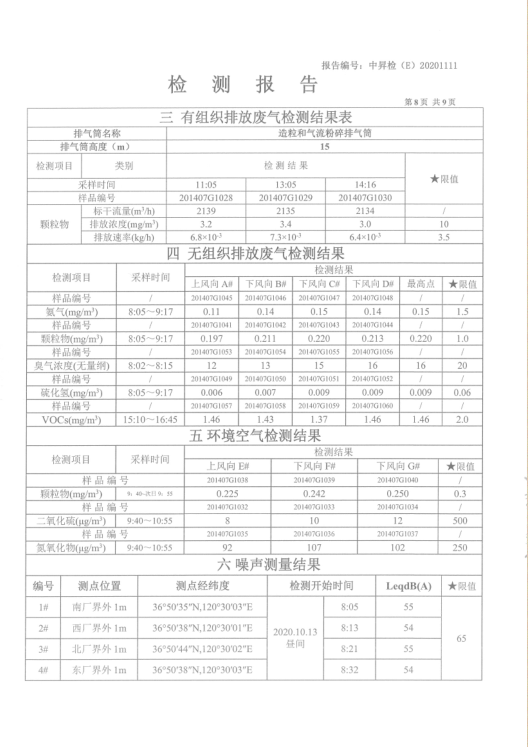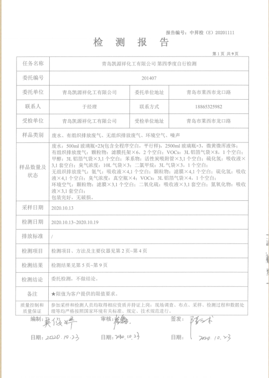 2020年10月份環(huán)境檢測信息公開(kāi)
